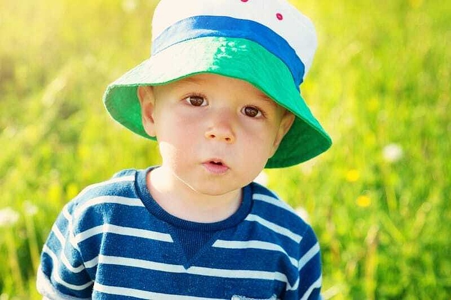 - Schützen Sie Ihr Kind mit sonnengerechter Kleidung, einer Kopfbedeckung und einer Sonnenbrille vor der UV-Strahlung.